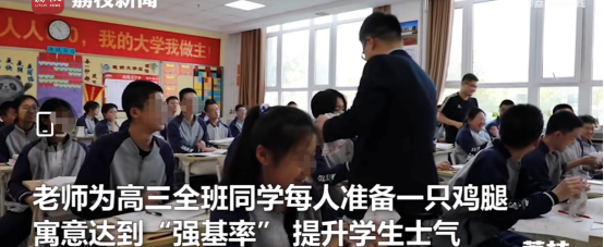 上个月有个新闻,班主任送全班学生一人一只鸡腿,寓意“强基率”,还有些学校会在高考前夕给学生发粽子。