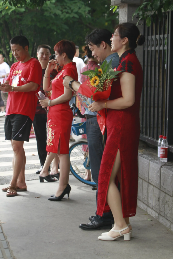 妈妈穿旗袍——旗开得胜;爸爸穿马褂,寓意马到成功;进考场时要先跨右脚,预示名列前茅。